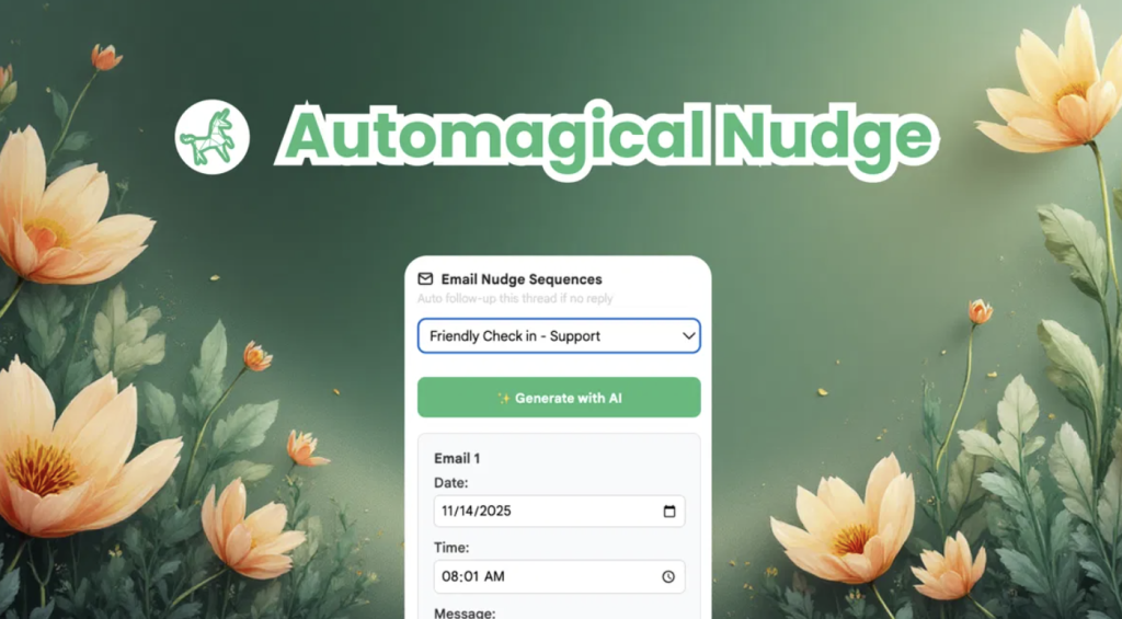 Automagical Nudge is the premier integration for professionals who require immediate results without technical overhead. It functions as an intelligence layer and email sequencer residing natively within your Gmail sidebar.